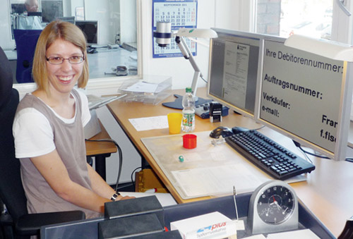 Top im Job trotz Handicap: Jana Biere aus Lage wird derzeit mit Unterstützung des Integrationsfachdienstes der Netzwerk Lippe gGmbH in Bielefeld zur Bürokraft ausgebildet. Ihr Arbeitsplatz bei der Firma Stockmeier ist behindertengerecht ausgestaltet.Foto: privat