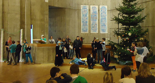 Die Weihnachtsgeschichte aus dem Lukas-Evangelium wurde von Schülerinnen und Schülern aller 6. Klassen vorgelesen und als Standbild dargestellt.