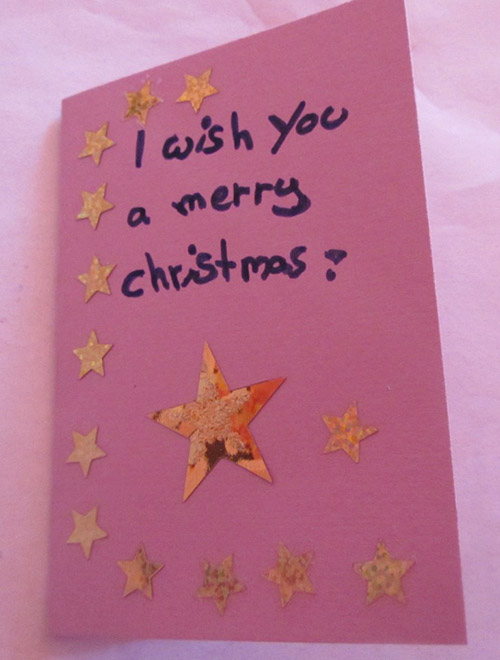 Um sich auf das kommende Weihnachtsfest einzustimmen, bastelten die Schülerinnen und Schüler der Klasse 6c im Englischunterricht „Christmas Cards“ und versahen diese mit englischen Texten. Im GL-Unterricht wurde die genaue Lage der Partnerstädte mit Hilfe des Atlas recherchiert. Anschließend wurden die Karten (zwei bis fünf pro Land) per Post in die Partnerstädte u.a. nach England, Litauen, Rumänien, Spanien, Italien, Dänemark etc. geschickt.