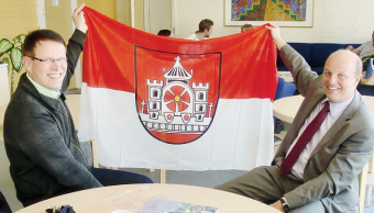 Gastgeschenk: Bürgermeister Rainer Heller und Markku Kiskii von der Mertala-Gesamtschule zeigen Verbundenheit. Foto: privat