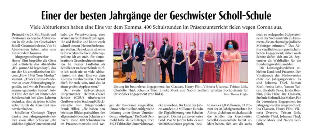 Posted on 16. Juni 2021 by René Hegemann Kommentare deaktiviert für Einer der besten Jahrgänge der Geschwister-Scholl-Schule – LZ-Artikel