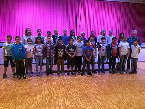 Zum Abschluss der Feier und bevor die Kinder mit ihren Klassenlehrerinnen und Klassenlehrern die neuen Klassenräume „eroberten“, stellten sie sich den Fotografen: