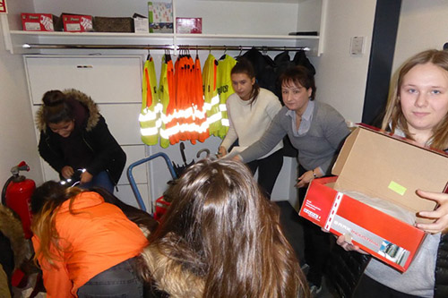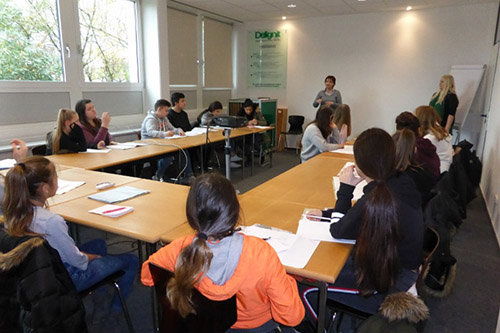 Birgit Wirth, die den Kurs des Jahrgangs 8 leitet, hatte alle sehr gut auf diesen Besuch vorbereitet. So hatten sich alle Kursteilnehmer vorher schon mit diesen Berufen beschäftigt und sich kundig gemacht, welche Kenntnisse, Fähigkeiten und Schulabschlüsse für die vorgestellten Berufe notwendig sind. Im Anschluss an die Führung standen Kurt Hünig und Anja Gottesbüren von der Firma Delignit zur Verfügung, um alle weiteren Fragen zu beantworten. So ließen sich die Schüler erklären, welche Tätigkeiten ein Fachlagerist ausführt, dass der Arbeitstag 7,6 Stunden lang ist und dass Delignit in all diesen Berufen ausbildet. Die Auszubildenden bekommen ein Entgelt, das sich an den Tarifen orientiert. Auf die Antwort nach den Fragen zu den Fähigkeiten, die man besitzen sollte, und welche Schulfächer besonders wichtig seien, um sich auf eine Stelle zu bewerben, schauten alle ganz schön erstaunt. Die Antwort „Sport“ hätte nämlich niemand erwartet. Und doch zeigt die Note in diesem Fach etwas, was man an den Noten in den ebenso wichtigen Fächern wie Mathe und Englisch nicht erkennt: Durchhaltevermögen, Ausdauer, Teamfähigkeit und Fitness. Alles Voraussetzungen, die nicht nur in diesen Berufen von großer Wichtigkeit sind.