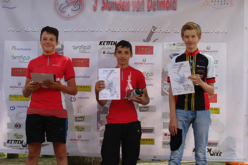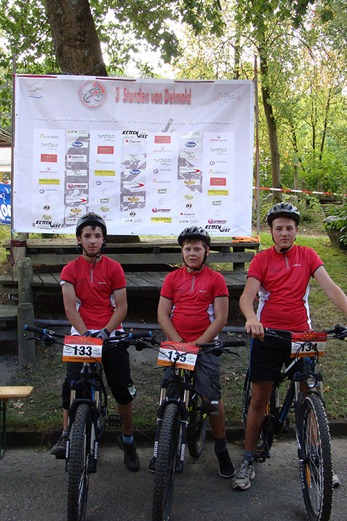 Das vom Detmolder Verein „BikeSportLippe“ organisierte Rennen ging über 2 Runden a 5 km. Da wir die Strecke schon im Rahmen der AG trainiert hatten, kamen alle Fahrer bei bewölktem, aber trockenen Wetter gut zurecht und haben erfolgreich die Plätze 1, 2 und 4 in der Altersklasse U15 belegt. Es war für unsere Schüler das erste Mountainbikerennen und sie haben es sehr erfolgreich absolviert.