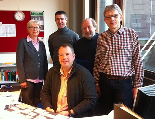 Das Schulleitungsteam der GSS: (v.l.) Sigrid Quackenbrügger (Abteilungsleiterin I), Peter Bussemeier (Abteilungsleiter II), Christoph Trappe (Schulleiter), Fritz Schwensfeger (stellv. Schulleiter), Enst Meuß (Didaktischer Leiter) und (nicht im Bild) Thomas Deppe (Oberstufenleitung)