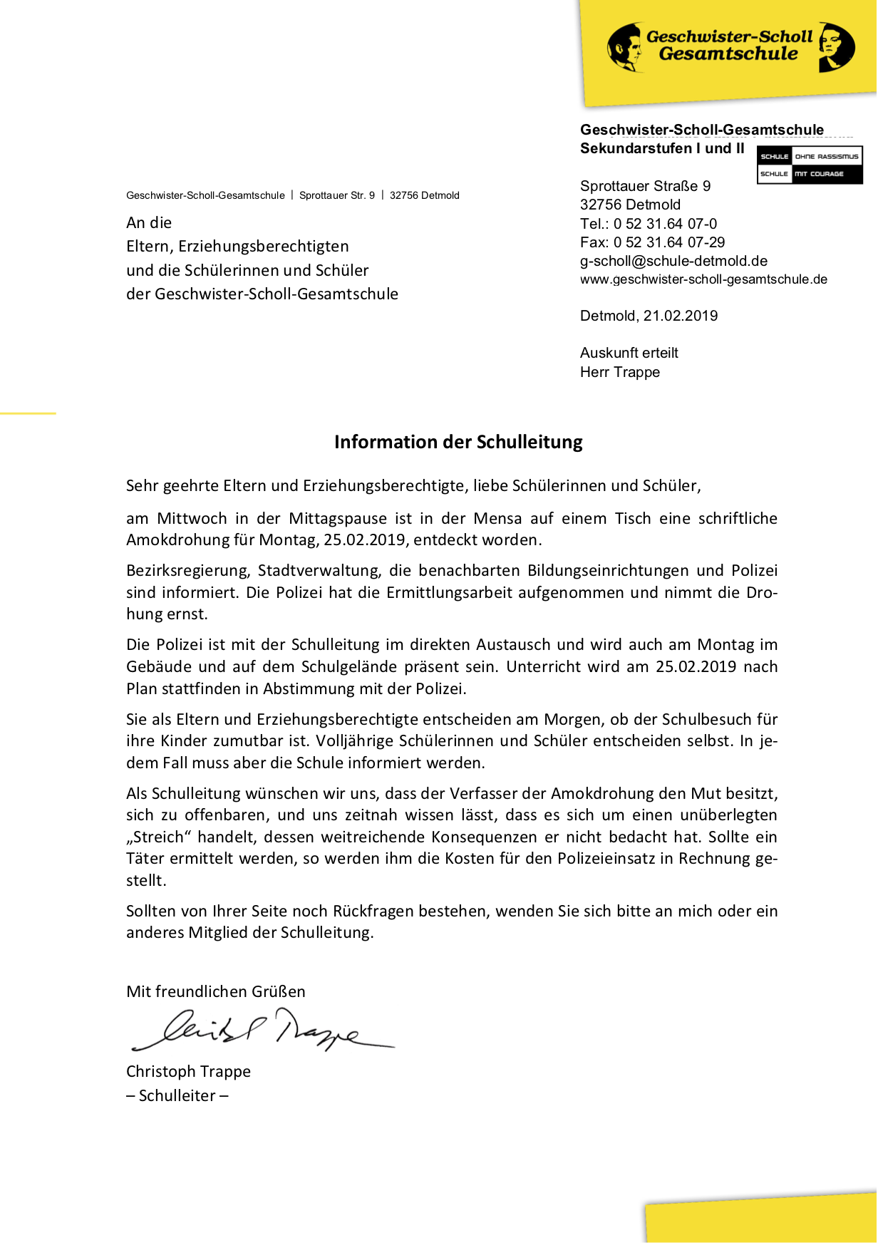 21. Februar 2019 | Full size is 1239 × 1754 pixels Kommentare deaktiviert für Informationen der Schulleitung