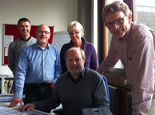 Schulleitungsteam der GSS, v.l.: Peter Bussemeier (Abteilungsleiter II), Thomas Deppe (Oberstufenleitung), Fritz Schwensfeger (stellvertretender Schulleiter), Sigrid Quackenbrügger (Abteilungsleiterin I) und Ernst Meuß (Didaktischer Leiter)