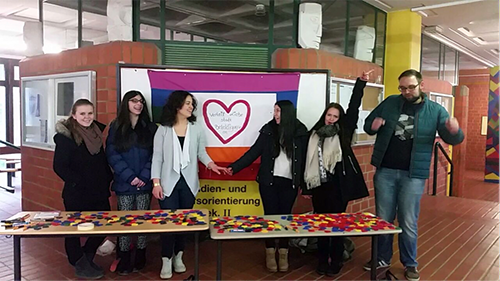 Am 13.02.15 und am 25.03.15 stellte die Rainbow AG passend zum Valentinstag einen Stand in der Pausenhalle unter dem Motto „Verteil Liebe statt Beleidigungen“ auf.