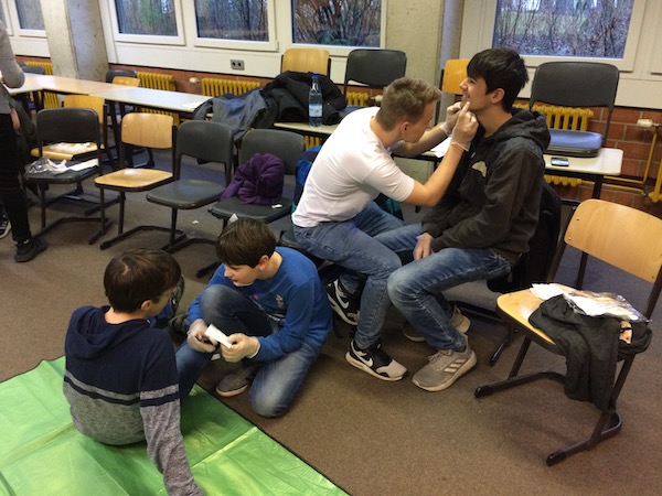 Im Notfall wird vielleicht nicht immer unbedingt jede Maßnahme zu 100% richtig sein. Aber so gar nichts tun, weiter gehen oder „gaffen“ wäre in jedem Fall verkehrt. Darum soll dieser Kurs vor allem auch Mut machen, Menschen bei Verletzungen oder in gesundheitlichen Notlagen zu helfen, sie anzusprechen oder zu beruhigen, auch wenn man die Person gar nicht kennt. In der Schule klappt das jedenfalls schon sehr gut.
