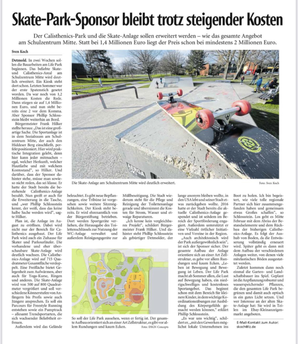 Skate-Park-Sponsor bleibt trotz steigender Kosten – LZ-Artikel