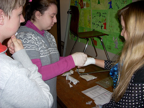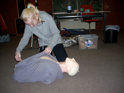 Neben den theoretischen Anteilen gab es wieder viel Praxis und auch viel zu lachen. Der Erste-Hilfe-Kurs mit Frau Retzer ist daher immer ein Erlebnis, bei dem gleichzeitig viel gelernt wird.