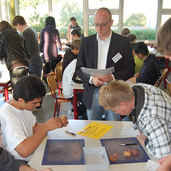 Mithilfe eines Berufsparcours lernen alle Schülerinnen und Schüler der achten Jahrgangsstufe an 20 verschiedenen Stationen typische berufliche Abläufe kennen. An bestimmten, den sogenannten MINT-Stationen (MINT= Mathematik, Informatik, Naturwissenschaften, Technik) stehen neben Mitarbeitern von Lippe Bildung auch Mitarbeiter der Firma Weidmüller. Sie beobachten die Jugendlichen an diesen Stationen und notieren sich ihre Fähigkeiten.