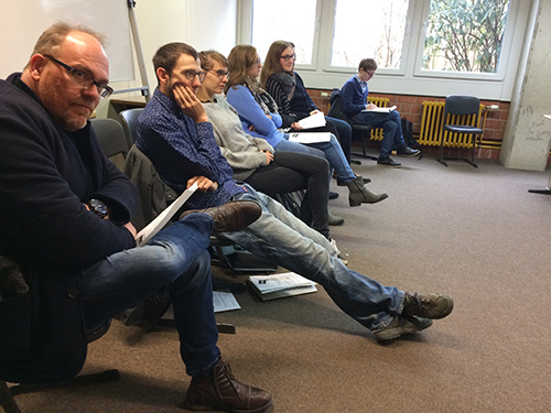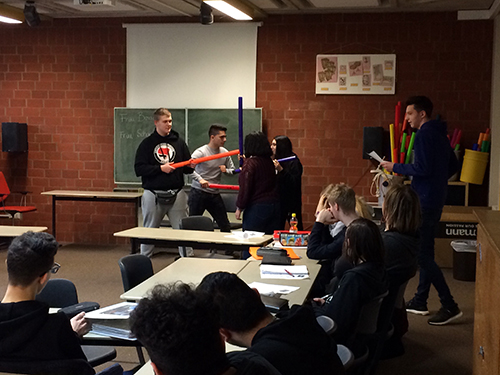 Die Studentinnen Anna Borsdorf und Maren Schoppenhorst hatten eine Stunde mit weniger bekannten Musiksequenzen aus „Der Herr der Ringe“ vorbereitet. Die Schüler wurden in Gruppen aufgeteilt, hörten die jeweiligen Musikbeispiele, notierten dazu ihren spontanen Eindruck und entwickelten dann mehrere Standbilder zur Musik.