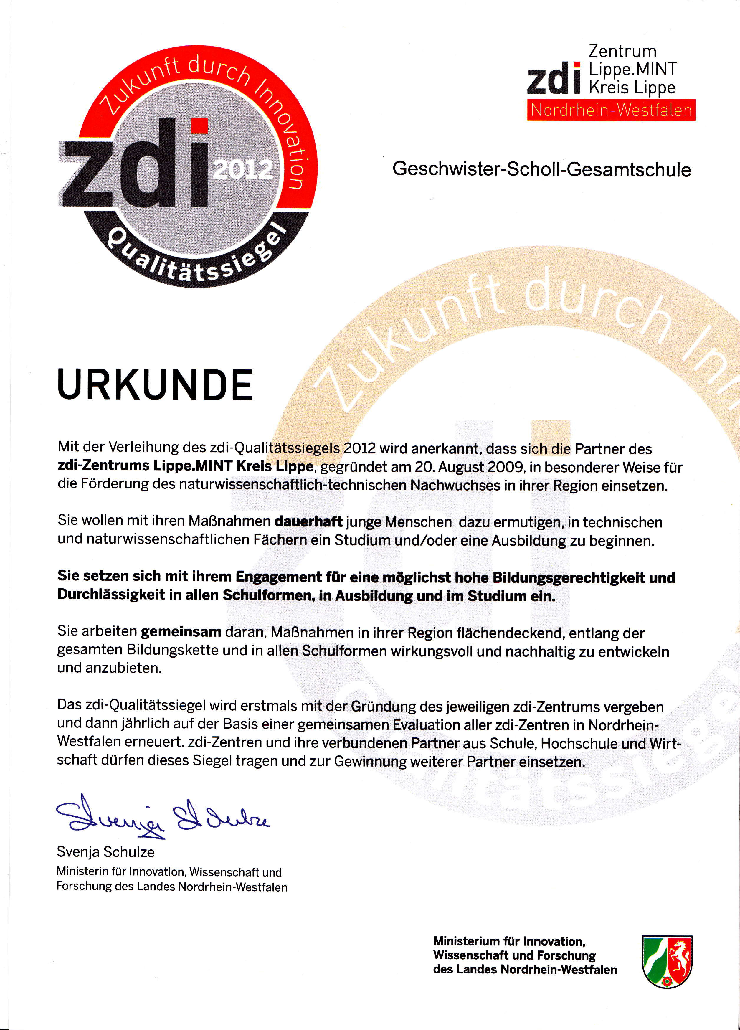 Zdi-Qualitätssiegel für die Geschwister-Scholl-Schule
